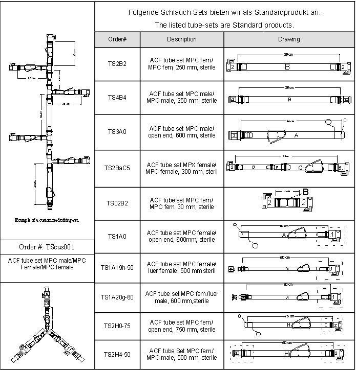 (for more info click to enlarge) Benötigen Sie "Ihr" customized Schlauchsystem ? - Fragen Sie uns an ! Do you need "your" customzied Tube Set ? - Do not hesitate to contact us ! |
